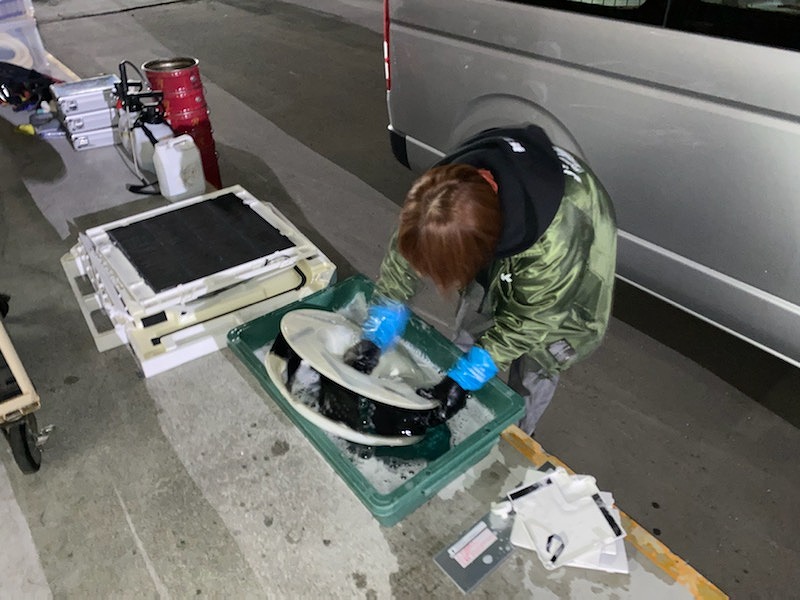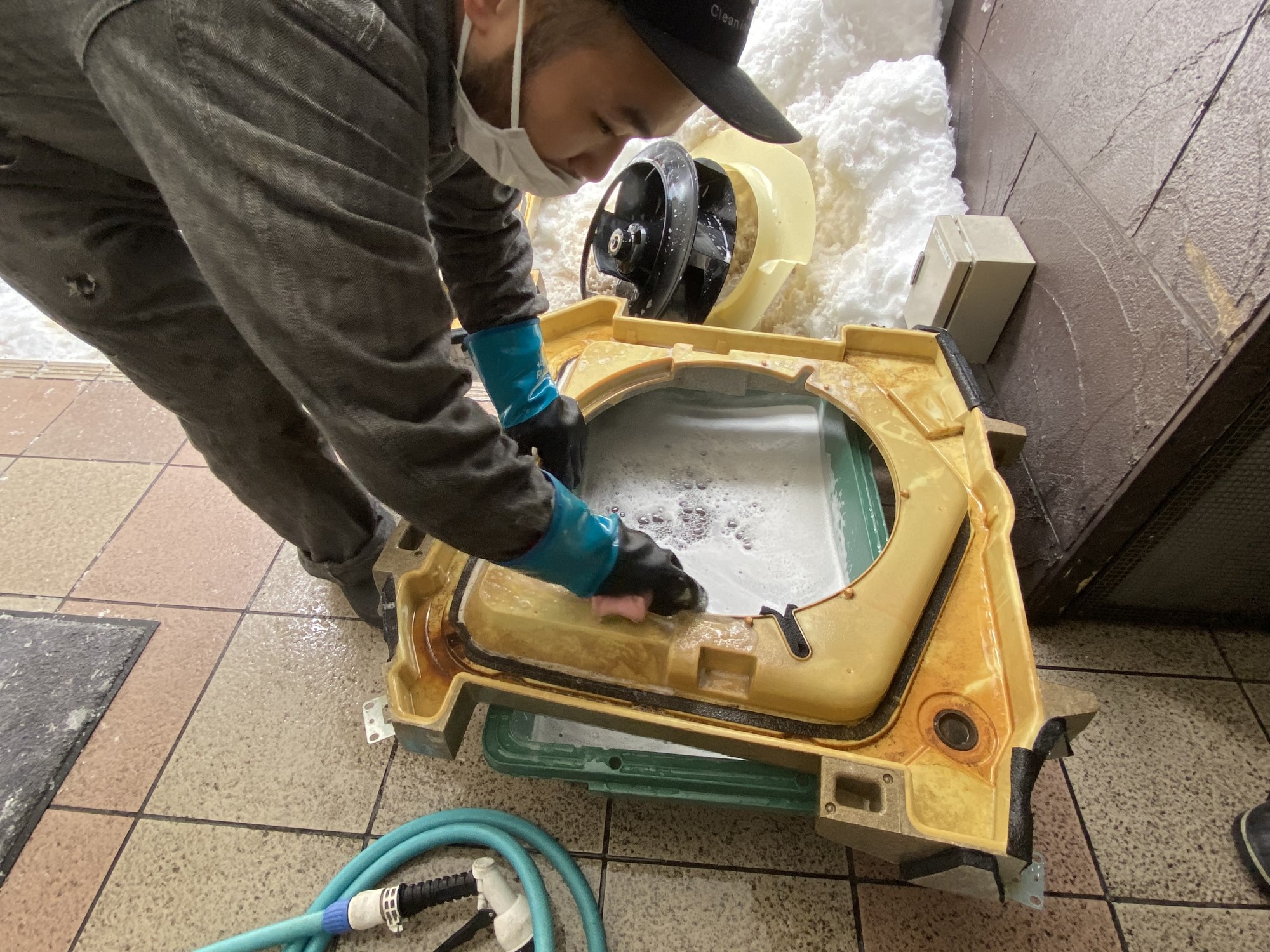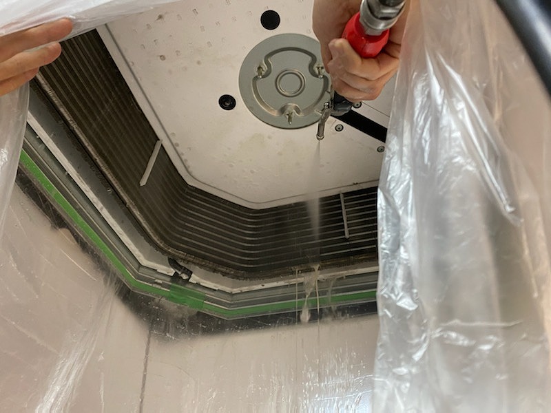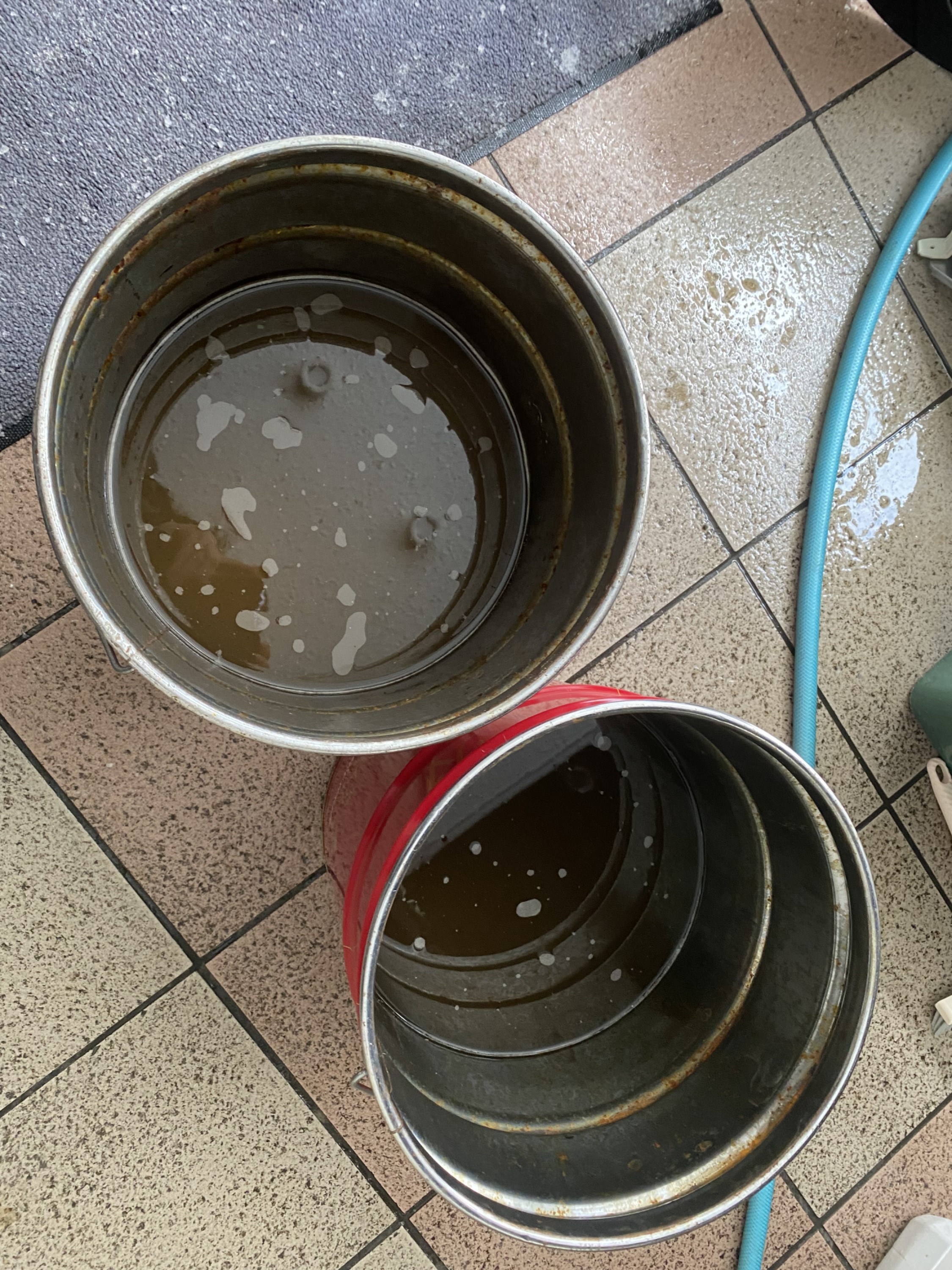 高圧洗浄時に出てくる汚水は黒く濁っており、エアコン洗浄を初めて実施された方は大変驚かれる事が多いです。